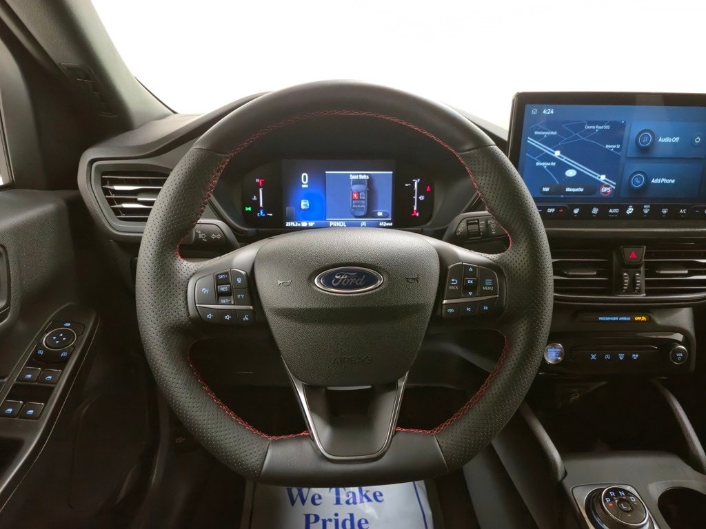 Silver Metallic 2025 Ford Escape ST-Line AWD 8-Speed Automatic 1.5L EcoBoost AWD, 3.81 Axle Ratio, 4-Wheel Disc Brakes, 6 Speakers, ABS brakes, Adaptive Cruise Control w/Stop-and-Go, Air Conditioning, Alloy wheels, AM/FM radio: SiriusXM, AM/FM Stereo, Auto High-beam Headlights, Automatic temperature control, Brake assist, Bumpers: body-color, Cold Weather Package, Compass, Connected Navigation, Delay-off headlights, Driver door bin, Driver vanity mirror, Dual front impact airbags, Dual front side impact airbags, Electronic Stability Control, Emergency communication system: SYNC 4 911 Assist, Equipment Group 300A, Ford Co-Pilot360 Assist+, FordPass Connect, Four wheel independent suspension, Front & Rear Floor Liners w/Carpet Mats, Front anti-roll bar, Front Bucket Seats, Front Center Armrest, Front dual zone A/C, Front License Plate Bracket, Front reading lights, Fully automatic headlights, Heated Front Row Seats, Heated Sideview Mirrors, Heated Steering Wheel, Illuminated entry, Intersection Assist, Knee airbag, Low tire pressure warning, Occupant sensing airbag, Outside temperature display, Overhead airbag, Overhead console, Panic alarm, Passenger door bin, Passenger vanity mirror, Power door mirrors, Power driver seat, Power Liftgate, Power steering, Power windows, Predictive Speed Assist, Radio data system, Rear anti-roll bar, Rear Parking Sensor, Rear reading lights, Rear seat center armrest, Rear window defroster, Rear window wiper, Rear-View Camera, Remote keyless entry, Remote Starter System, Speed control, Speed-sensing steering, Speed-Sensitive Wipers, Split folding rear seat, Spoiler, Sport steering wheel, Steering wheel mounted audio controls, SYNC 4, SYNC 4 w/Enhanced Voice Recognition, Tachometer, Tech Pack #1, Telescoping steering wheel, Tilt steering wheel, Traction control, Trip computer, Variably intermittent wipers, Vinyl/Cloth Front Sport Contour Bucket Seats, Wheels: 18" Rock Metallic Painted Aluminum, AWD.