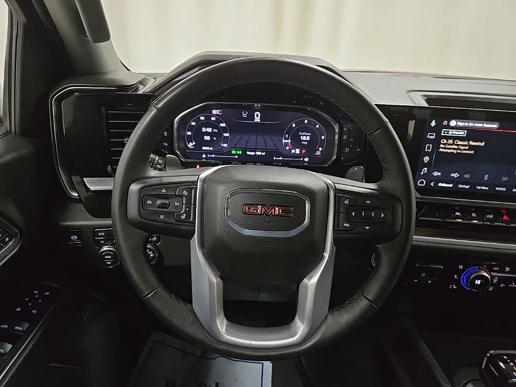 Volcanic Red Tintcoat 2025 GMC Sierra 1500 SLT 4WD 10-Speed Automatic EcoTec3 6.2L V8 10-Speed Automatic, 4WD, Black Leather, 10-Way Power Driver Seat Adjuster w/Lumbar, 10-Way Power Passenger Seat Adjuster w/Lumbar, 120-Volt Bed Mounted Power Outlet, 120-Volt Interior Power Outlet, 170 Amp Alternator, 2 Charge/Data USB Ports, 2 Charge/Data USB Ports Inside Center Console, 2 Type-C Charge-Only Rear USB Ports, 20" Polished Aluminum Wheels, 3.23 Rear Axle Ratio, 4-Wheel Disc Brakes, 6 Speakers, 6-Speaker Audio System Feature, ABS brakes, Adaptive Cruise Control, Air Conditioning, Alloy wheels, AM/FM radio: SiriusXM with 360L, Apple CarPlay/Android Auto, Auto High-beam Headlights, Auto-dimming door mirrors, Auto-dimming Rear-View mirror, Auto-Locking Rear Differential, Automatic Emergency Braking, Automatic temperature control, Auxiliary External Transmission Oil Cooler, Brake assist, Buckle to Drive, Bumpers: chrome, Chrome Header & Chrome Grille Insert Bars, Color-Keyed Carpeting Floor Covering, Compass, Deep-Tinted Glass, Delay-off headlights, Driver door bin, Driver Memory, Driver vanity mirror, Dual Active Exhaust, Dual Exhaust System, Dual front impact airbags, Dual front side impact airbags, Electric Rear-Window Defogger, Electronic Precision Shift, Electronic Stability Control, Emergency communication system: OnStar, Floor-Mounted Center Console, Following Distance Indicator, Forward Collision Alert, Front 40/20/40 Split-Bench Seat, Front anti-roll bar, Front Bucket Seats, Front Center Armrest w/Storage, Front dual zone A/C, Front fog lights, Front Frame-Mounted Black Recovery Hooks, Front Pedestrian Braking, Front Rain-Sensing Wipers, Front reading lights, Front wheel independent suspension, Fully automatic headlights, HD Rear Vision Camera, Heated 2nd Row Outboard Seats, Heated door mirrors, Heated Driver & Front Outboard Passenger Seating, Heated front seats, Heated steering wheel, Heavy-Duty Air Filter, High Capacity Suspension Package, Hill Descent Control, Hitch Guidance, Hitch View, Illuminated entry, In-Vehicle Trailering System App, Integrated Trailer Brake Controller, IntelliBeam Automatic High Beam On/Off, Keyless Open & Start, Lane Keep Assist w/Lane Departure Warning, LED Cargo Area Lighting, Low tire pressure warning, Manual Tilt-Wheel & Telescoping Steering Column, Memory seat, Navigation System, Occupant sensing airbag, Off-Road Suspension, OnStar Services Capable, Outside temperature display, Overhead airbag, Overhead console, Panic alarm, Passenger door bin, Passenger vanity mirror, Perf Leather-Appointed Front Outboard Seat Trim, Perimeter Lighting, Power Door Locks, Power door mirrors, Power driver seat, Power Front Passenger Windows w/Express Up/Down, Power Front Windows w/Driver Express Up/Down, Power passenger seat, Power Rake & Telescoping Steering Column, Power Rear Windows w/Express Down, Power Sliding Rear Window w/Rear Defogger, Power steering, Power Sunroof, Power windows, Preferred Equipment Group 4SA, Premium Bose 7-Speaker Sound System, ProGrade Trailering System, Push Button Start, Radio data system, Radio: Premium GMC Infotainment Audio System, Rain sensing wipers, Rear reading lights, Rear seat center armrest, Rear step bumper, Rear Wheelhouse Liners, Rear window defroster, Remote keyless entry, Remote Vehicle Starter System, Security system, SiriusXM w/360L Trial Subscription, SLT Convenience Package, SLT Preferred Package, Speed control, Speed-sensing steering, Split folding rear seat, Standard Suspension Package, Steering Wheel Audio Controls, Steering wheel mounted audio controls, Tachometer, Telescoping steering wheel, Theft Deterrent System (Unauthorized Entry), Tilt steering wheel, Traction control, Trailering Package, Trip computer, Universal Home Remote,